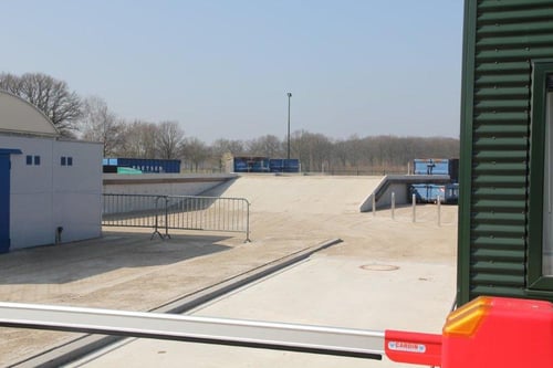 - Borstwering: de keerwanden lopen achter de open loods voor materieel- en materiaalopslag door in de vorm van een borstwering.